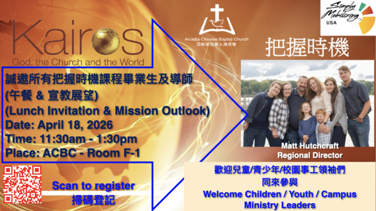 Make check payable to: Arcadia Chinese Baptist Church or ACBC