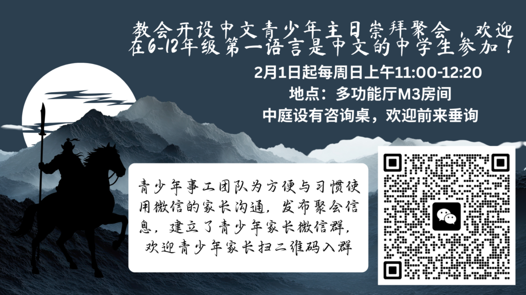 歡迎你來參加,讓我們一起聆聽特別為年輕人預備的信息與神的話語。