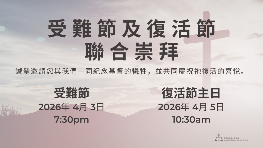 讓我們一同慶祝基督的復活。誠摯邀請您與我們一同紀念基督的犧牲,並共同慶祝祂復活的喜悅。